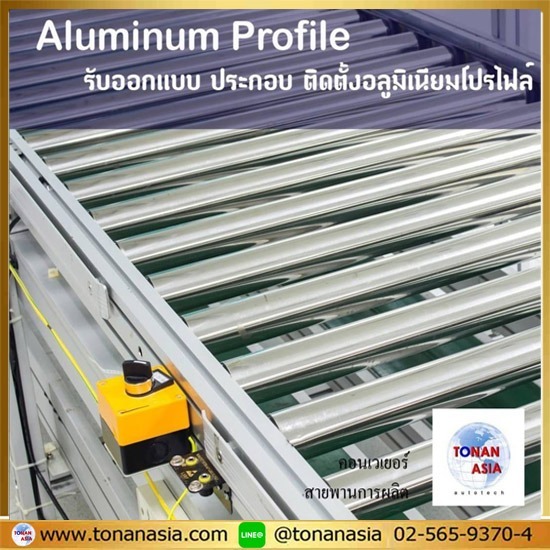 Aluminium Profile, Aluminium Frame อลูมิเนียมโปรไฟล์ อลูมิเนียมโปรไฟล์ เป็นอลูมิเนียมที่ผ่านการรีดขึ้นรูป ให้เป็นเส้น มีร่องสำหรับใช้ประกอบกับอุปกรณ์เสริม เช่น ฉากยึด น๊อตตัวผู้ น๊อตตัวเมีย นิยมใช้ในงานอุตสาหกรรม เช่นผลิตเป็นโครงคอนเวเยอร์ Conveyor หรือสายพานการผลิต เป็น Work Station สถานีทำงาน , Clean Room ห้องคลีนรูม , Cart รถเข็น, etc. เป็นต้น ข้อดีของการใช้อลูมิเนียมโปรไฟล์คือ สวยงาม โครงสร้างมีน้ำหนักเบาแต่รับน้ำหนักได้มาก ไม่เป็นสนิม ใช้การประกอบแบบน็อกดาวน์ ปรับเปลี่ยนโครงสร้าง ต่อเติมได้ง่าย คุณสมบัติ, น้ำหนักเบา, รับน้ำหนักได้มาก, ไม่เป็นสนิม, สวยงาม, ประกอบง่าย, ต่อเติมได้, ไม่ต้องเชื่อม อลูมิเนียมโปรไฟล์ (Aluminium Profile) เรามีหน้าตัดขนาดต่างๆ และความยาวยกเส้น 4 เมตร , 5.6 เมตร, (จำหน่ายแบบยกเส้นหรือสั่งตัดตามขนาดได้) Slot 6mm: 20x20, 20x40, 20x60, 20x80, 40x40 (2slot) Slot 8mm: 30 x30, 30x60, 30x90, 30x120, 60x60 (2slot), 60x120, 50x50 (2slot), 50x100 Slot 10mm: 40x40, 40x80, 40x160, 45x45, 45x90, 60x60, 90x90, 45x180, 80x80, 90x90, 90x180 การประยุกต์ใช้งาน Conveyor สายพานการผลิต Clean Room ห้องคลีนรูม Cover Machine ครอบเครื่องจักร Working Station สถานีทำงาน Shelf ชั้นวางของ Cart รถเข็น Structure โครงสร้างต่าง